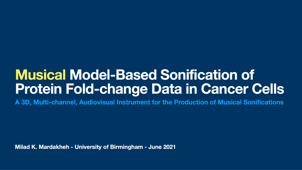Premiere of the fixed ambisonic work, Immortality, featured in Concert 2 of BEAST FEaST 2022: Resonances, at the University of Birmingham (UK). This science-art, computer music/acousmatic piece explores the concept of immortalization in cancer cells and was composed using the sonification of protein/RNA data derived from cancer research, utilising custom-built, Max/MSP sonification patches.